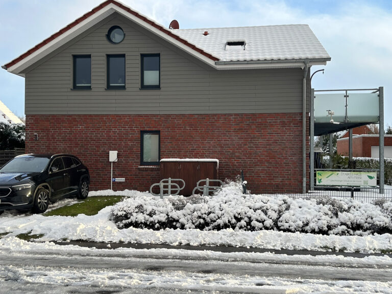Zur Erwärmung des Brauchwassers und zur Temperierung des Wohnraums ist in Starkes-Haus-am-Meer eine monovalente Wärmepumpe mit Erdkollektor installiert. Die Wärmepumpe nutzt die saubere und kostenlose Umweltwärme, die sich im Erdreich des Gartens befindet. Es wird so mit Hilfe der mit der Photovoltaik gewonnenen elektrischen Hilfsenergie (ca. 25 Prozent) und der Umweltenergie (ca. 75 Prozent) die benötigten 100 Prozent Heizenergie erzeugt. Somit ist keinerlei Heizöl oder Gas zur Erzeugung unserer Wohlfühlatmosphäre erforderlich.